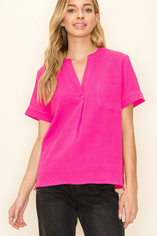 Fuchsia S/S Pocket Top
