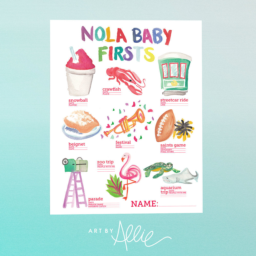 This keepsake poster is perfect for any expectant or new mom in and around New Orleans. It keeps track of all the vital Nola milestones that a baby makes and is vibrant and fun to hang in a nursery or play room.
