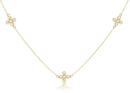 17" Choker Simplicity Classic Beaded Cross Gold Necklace
