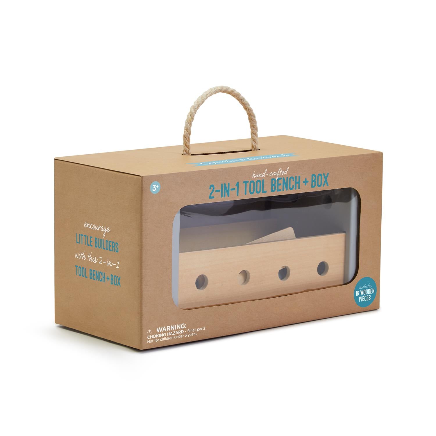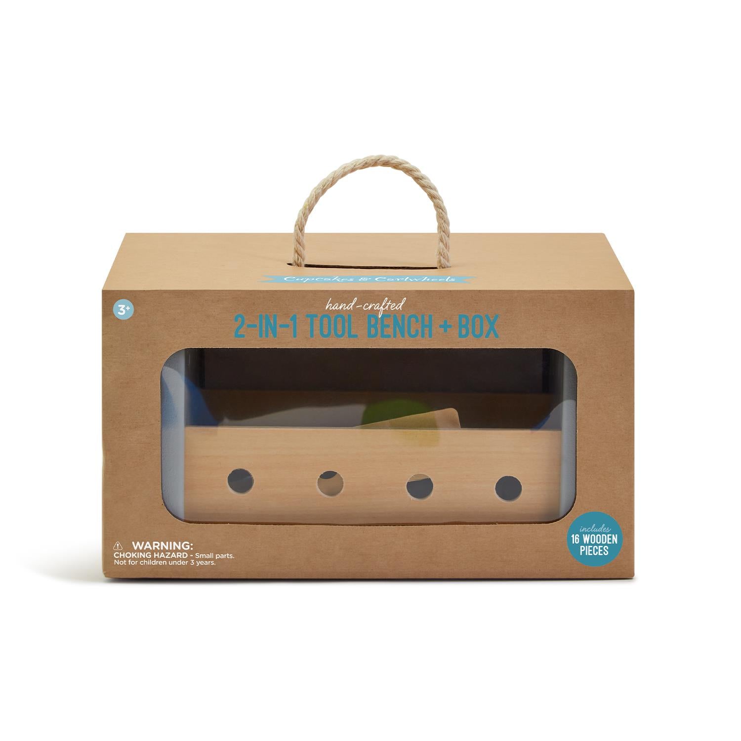 2-in-1 Hand-Crafted Wood Toolbox / Tool Bench with Tools in Gift Box