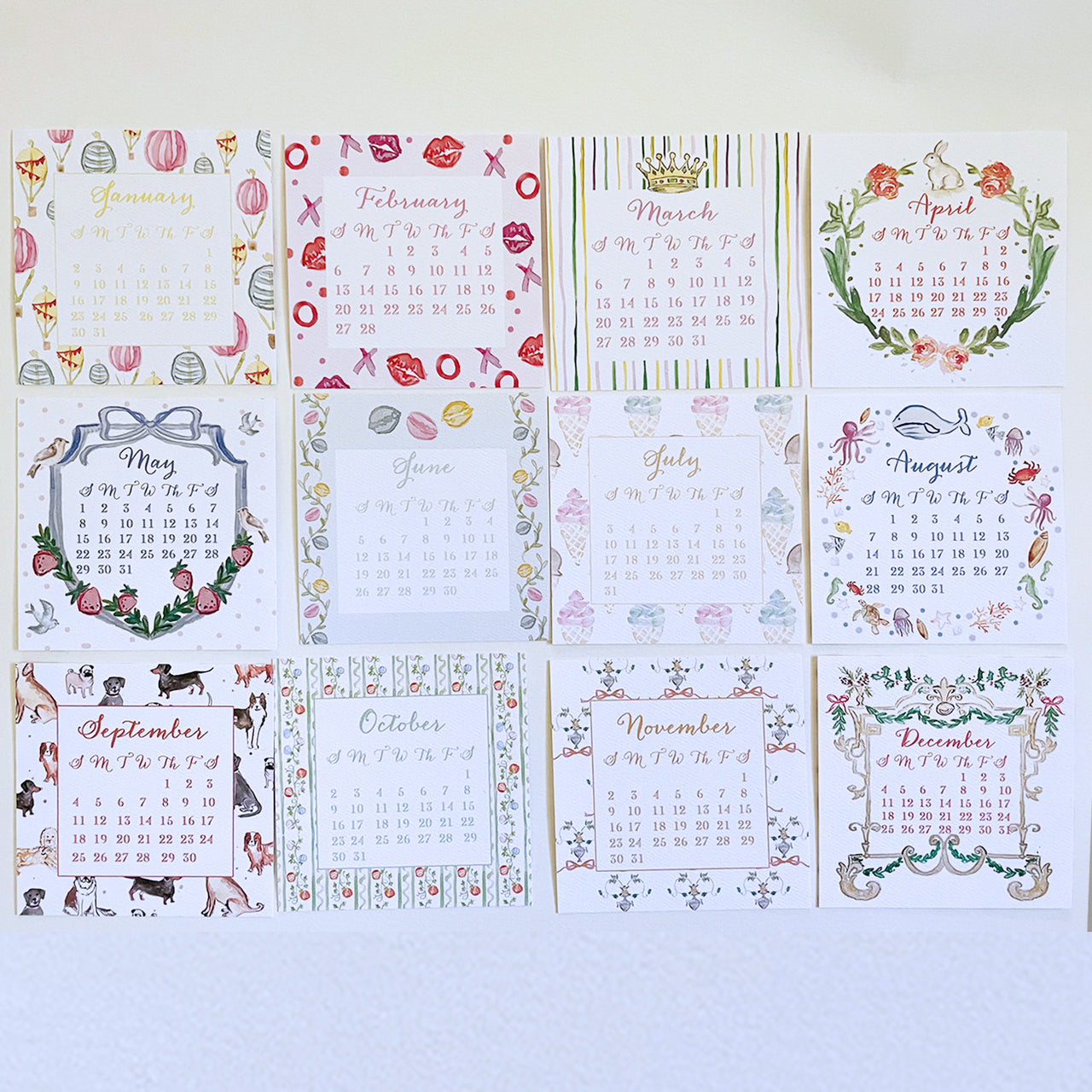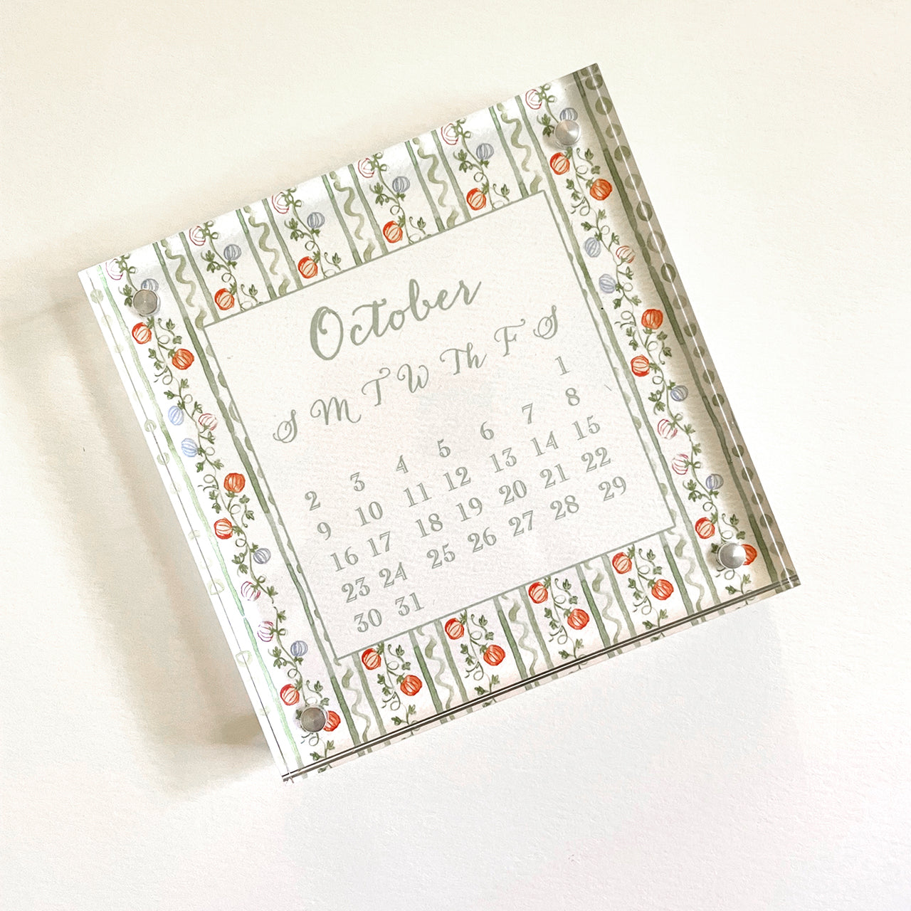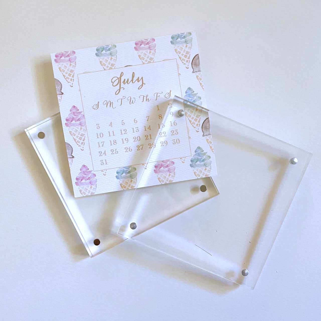 Our 4" x 4" acrylic block magnetic frame allows you to easily switch each month in 2022! Our hand illustrated calendar is perfect for your desk or kitchen.