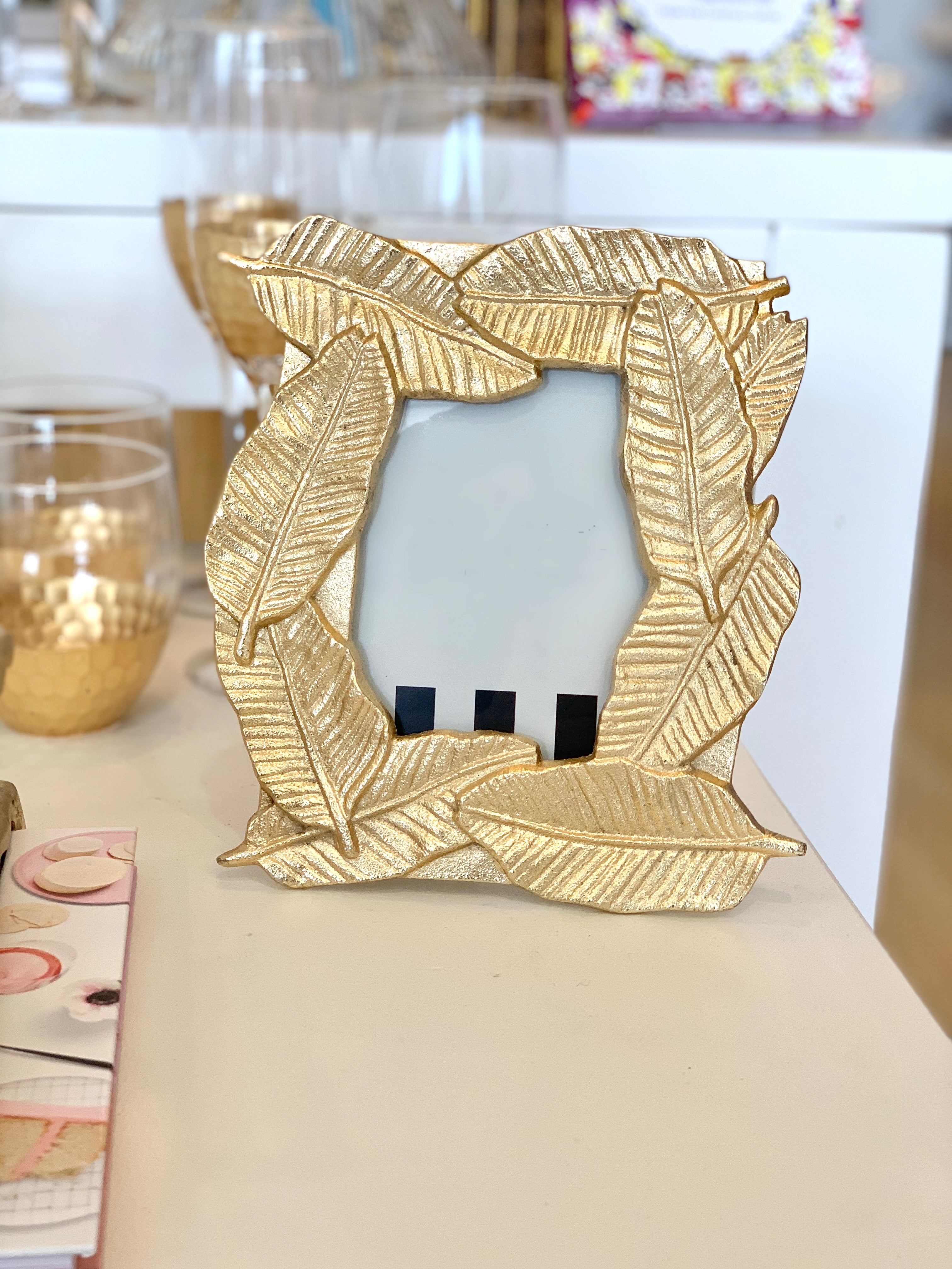 Bring a little of the outside inside with this gold metal banana leaf picture frame. Leaf design is unique and perfect for your most print worthy photos!