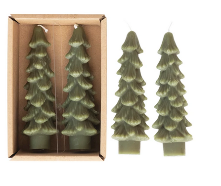 5"H Unscented Tree Shaped Taper Candles In Box, Evergreen Color, Set of 2 (Approximate Burn Time 5 Hours)