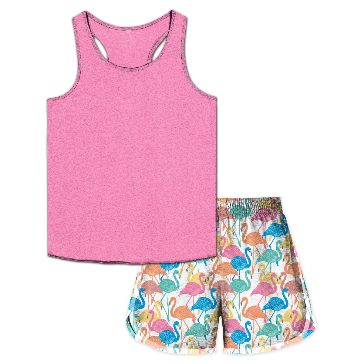 Description: Kids 50 Shades Of Flamingo Tank Top Jammie Short Set