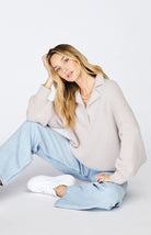 The Abby sweater is made of a soft, fuzzy yarn that is plush and cozy. Features include a balloon sleeve and collar that feels casual yet elevated.