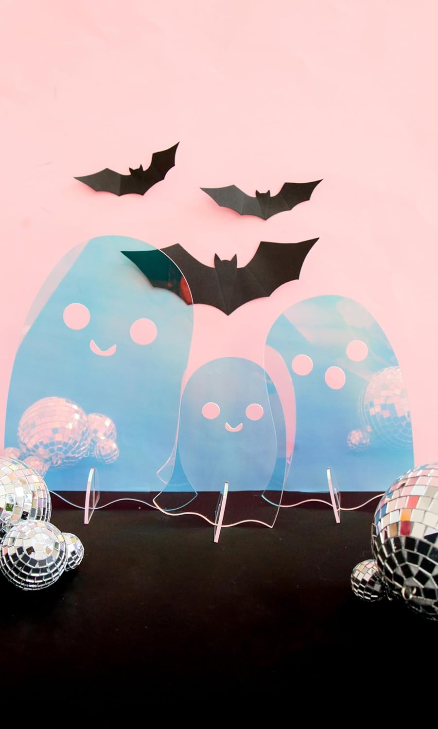 - Set includes three iridescent acrylic ghosts in three separate sizes, perfect for accenting your home or office Halloween decorations
