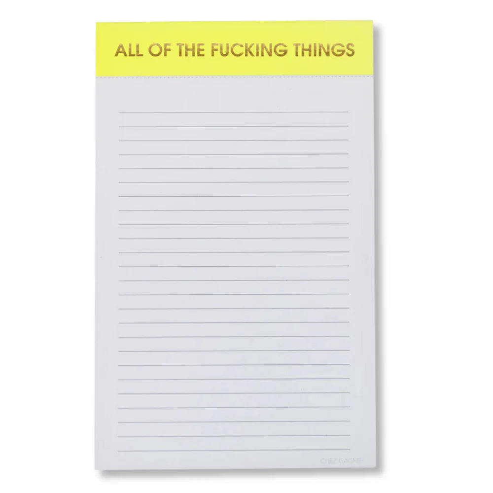 What do you get when you combine exceptionally thick paper, superb perforation and a wildly accurate and often hilarious phrase? Chez Gagné’s perfect notepads. Here to appease even the most OCD of us, our pristine perforated tear and heavy weight lined paper notepads are the ideal writing surface for manically jotting out your honey-do, shit-to-do, reminder or grocery list. Because we all know if it doesn’t get written down, it’s not getting done. We promise, you’ll f*cking love these.