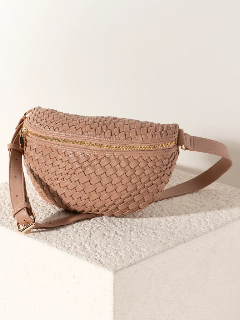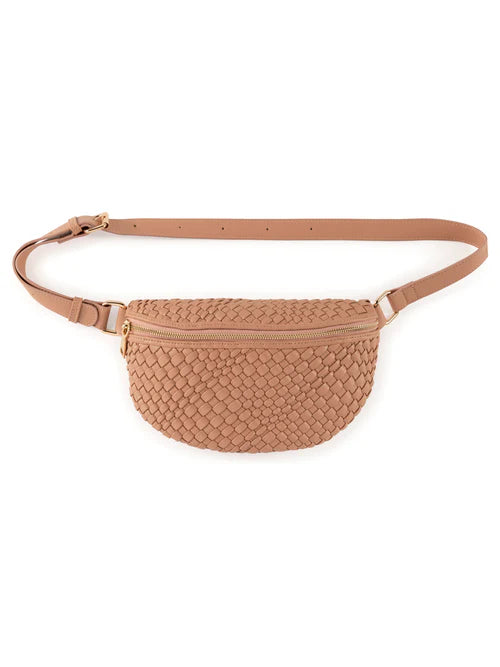 Give your handbag collection a stylish update with Shiraleah's Blythe Sling Bag. This sophisticated bag comes in a trendy and casual silhouette that can wrap around your waist or be slung fashionably across the body, and is made from woven vegan leather in a stylish, neutral almond color. With its adjustable belt strap and front-zip pocket, it allows you to go hands-free for all your daily activities. Pair with matching styles in the Blythe Collection, or other items from Shiraleah to complete your look!