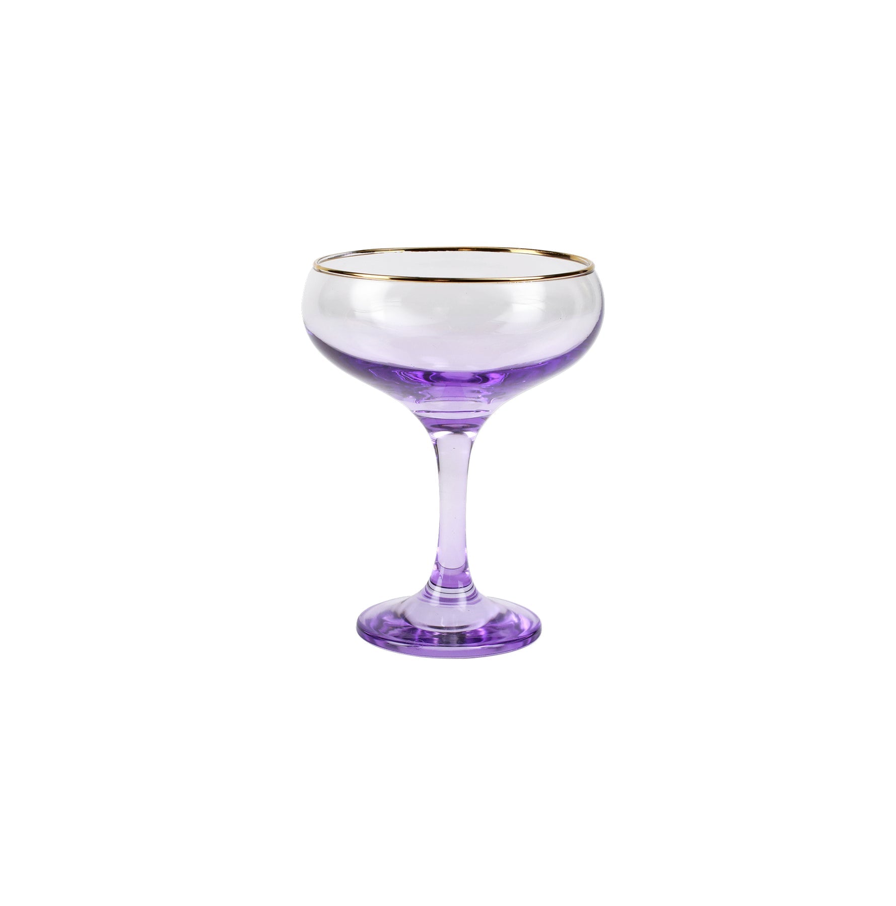 Add sparkle to any setting with a gilded gold rim and varied colored glass that refracts light on the Rainbow Coupe Champagne Glass.