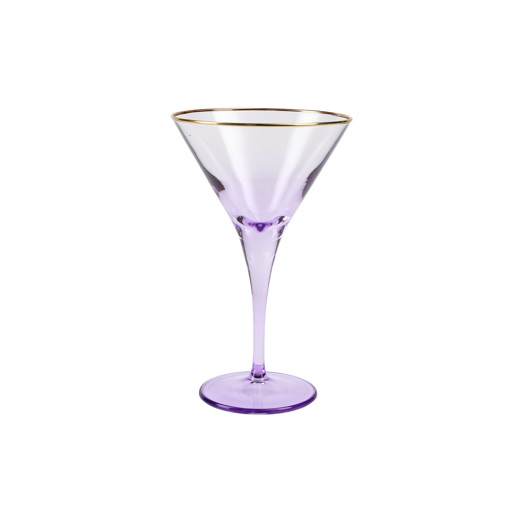 Add sparkle to any setting with a gilded gold rim and varied colored glass that refracts light on the Rainbow Martini Glass.