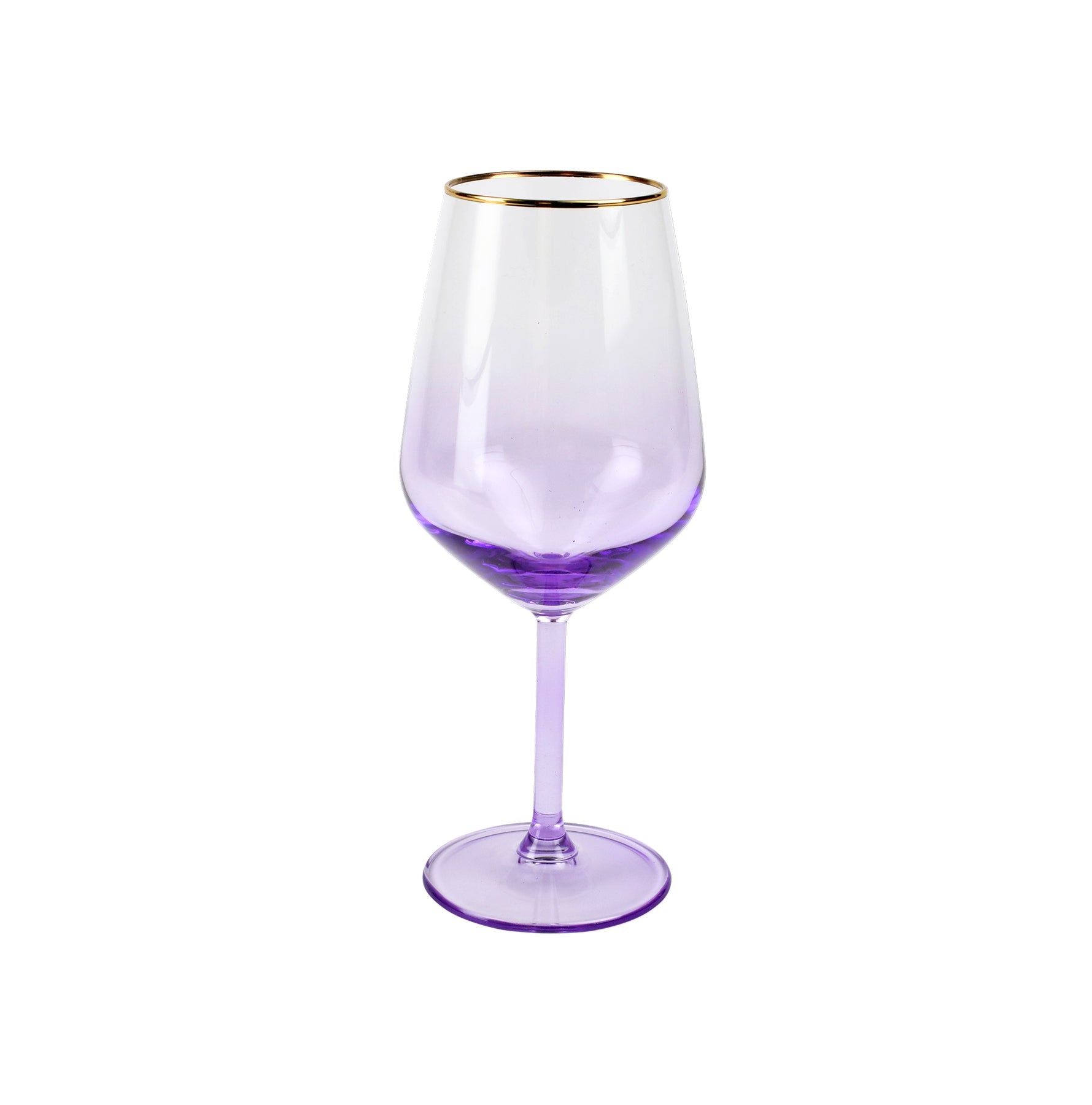 Add sparkle to any setting with a gilded gold rim and varied colored glass that refracts light on the Rainbow Wine Glass.