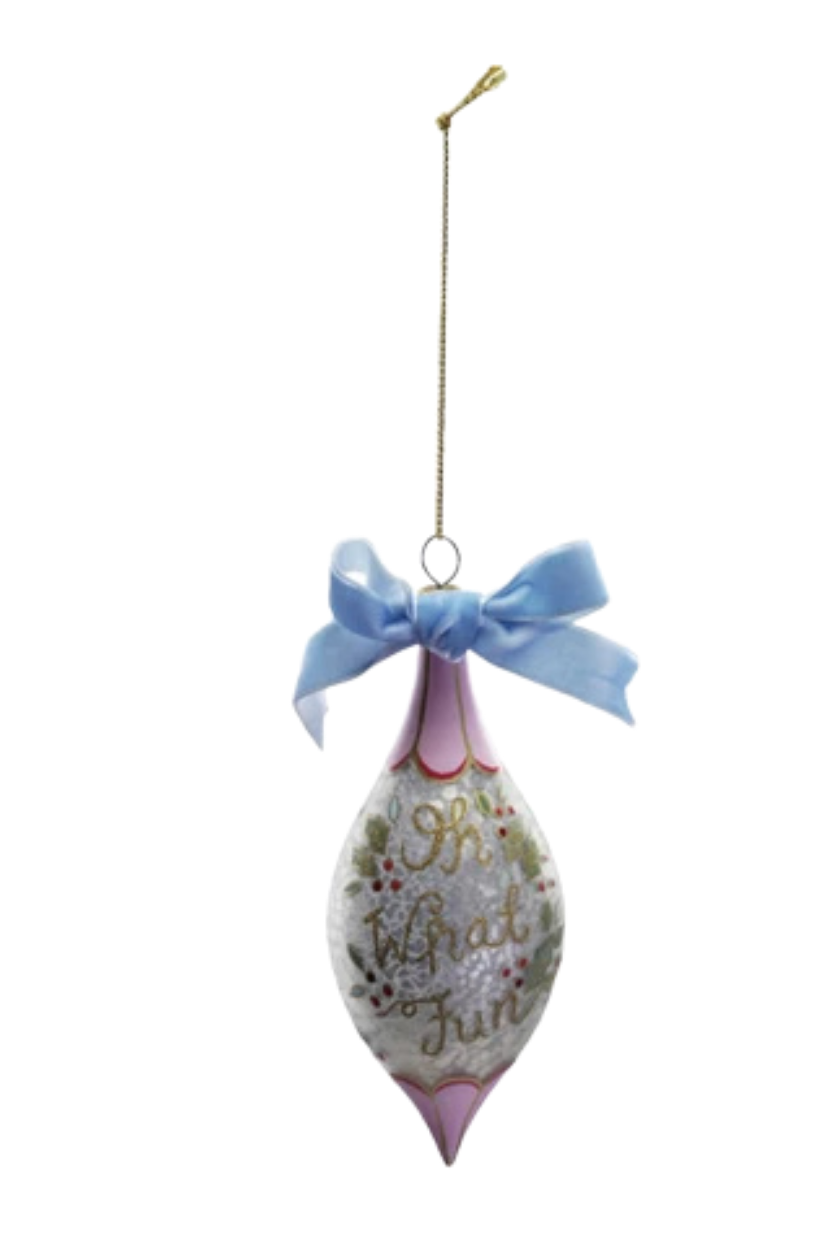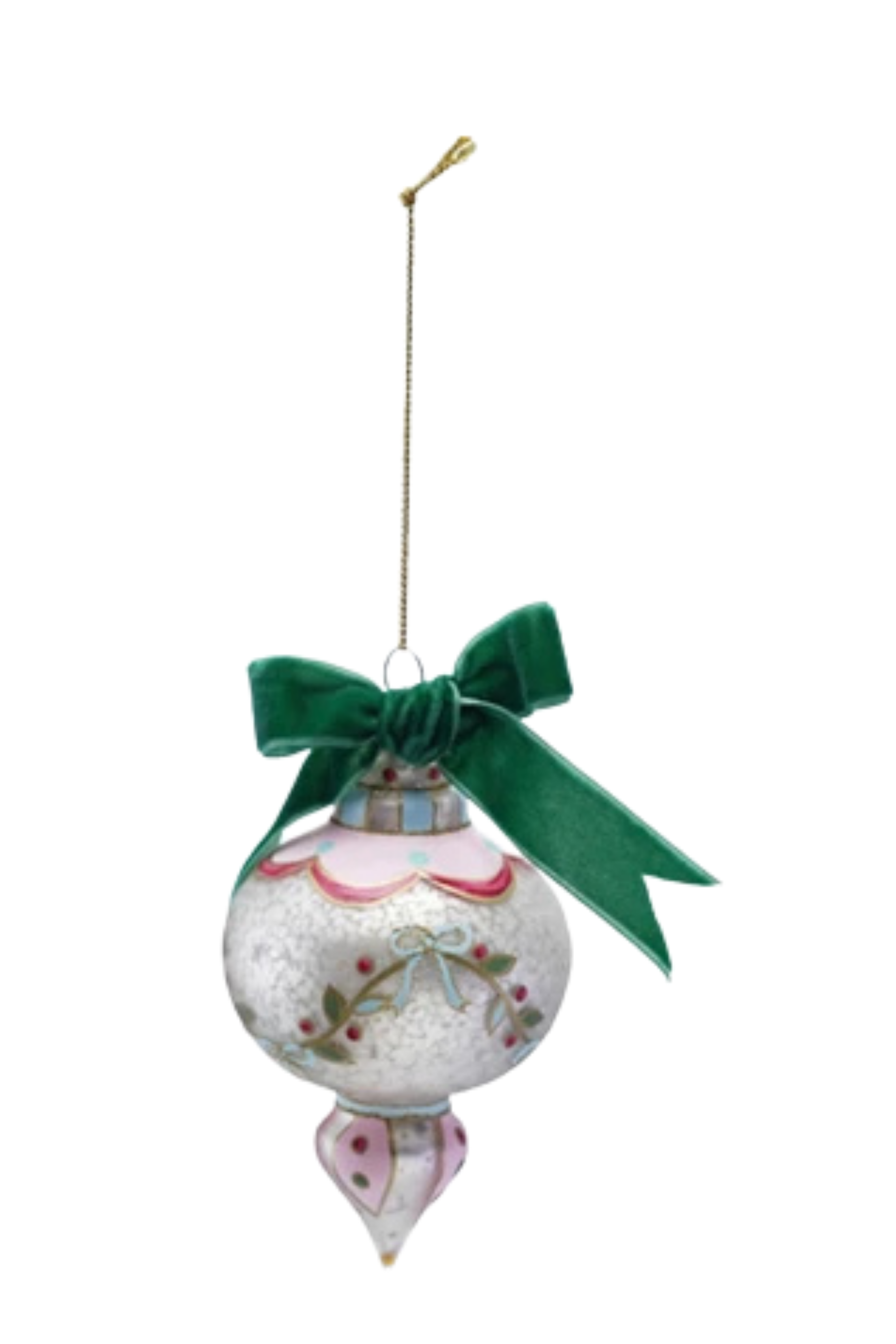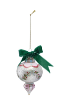 Approximately 5"H Hand-Painted Glass Ornament w/ Design/Velvet Bow, Antique Finish, Multi Color, 4 Styles