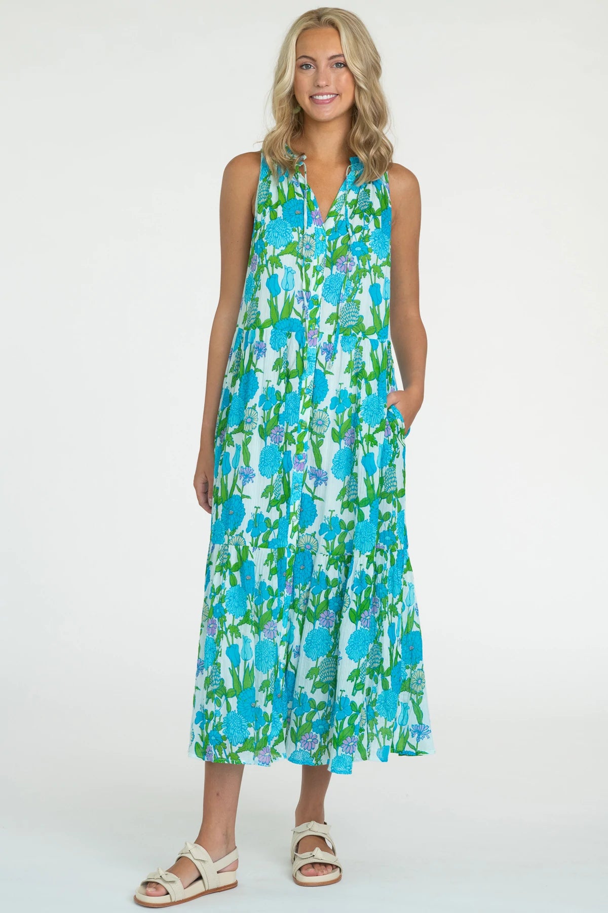 Aqua Mod Floral Ro Long Dress