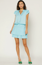 Aquamarine Ruffle Pleated Mini Dress