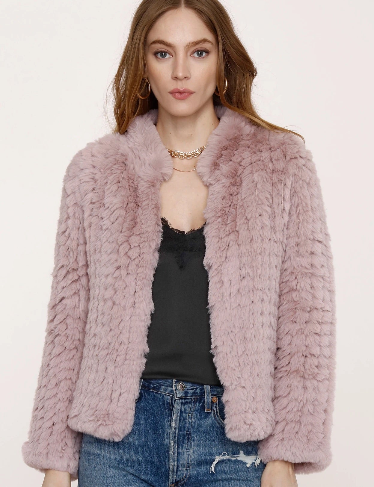 Let it be known, once you're wrapped up in our Aria Jacket, you'll never want to take it off. This cozy faux fur jacket features a small collar and hook and eye closure down the front. Pair with a lacy cami and jeans for an effortlessly cool look.