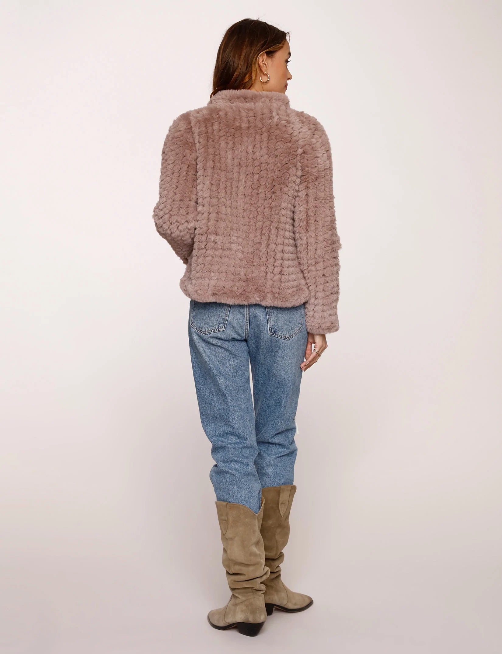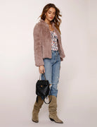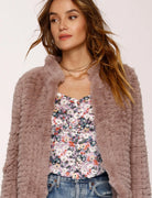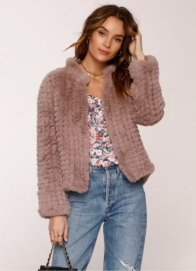 The Aria jacket is our faux fur jacket modeled after our best selling Rosa jacket. Made to be layered, with slightly crop length and 3/4 sleeves. This jacket will upgrade any look.