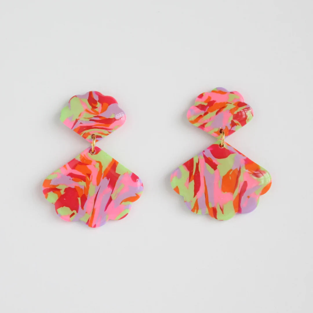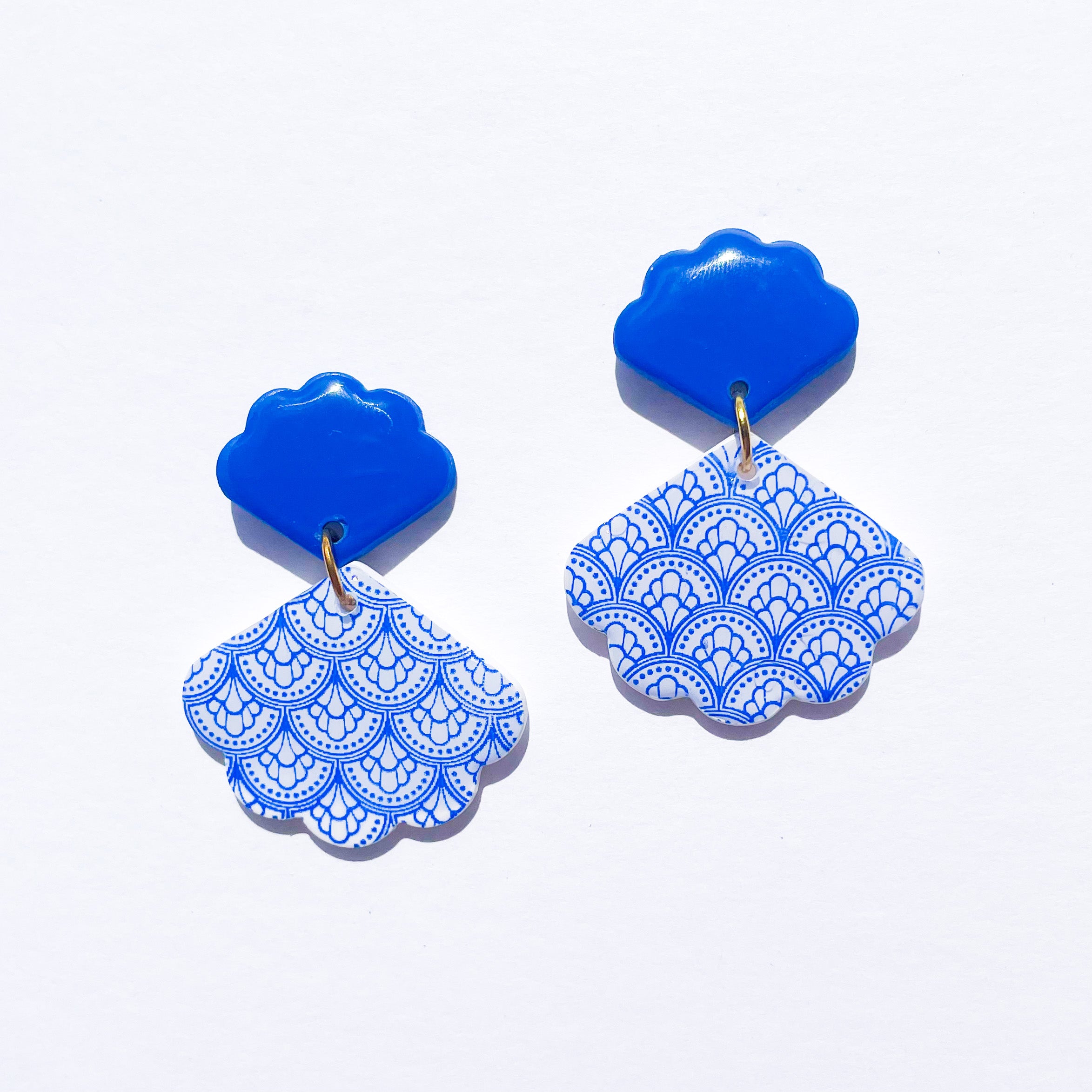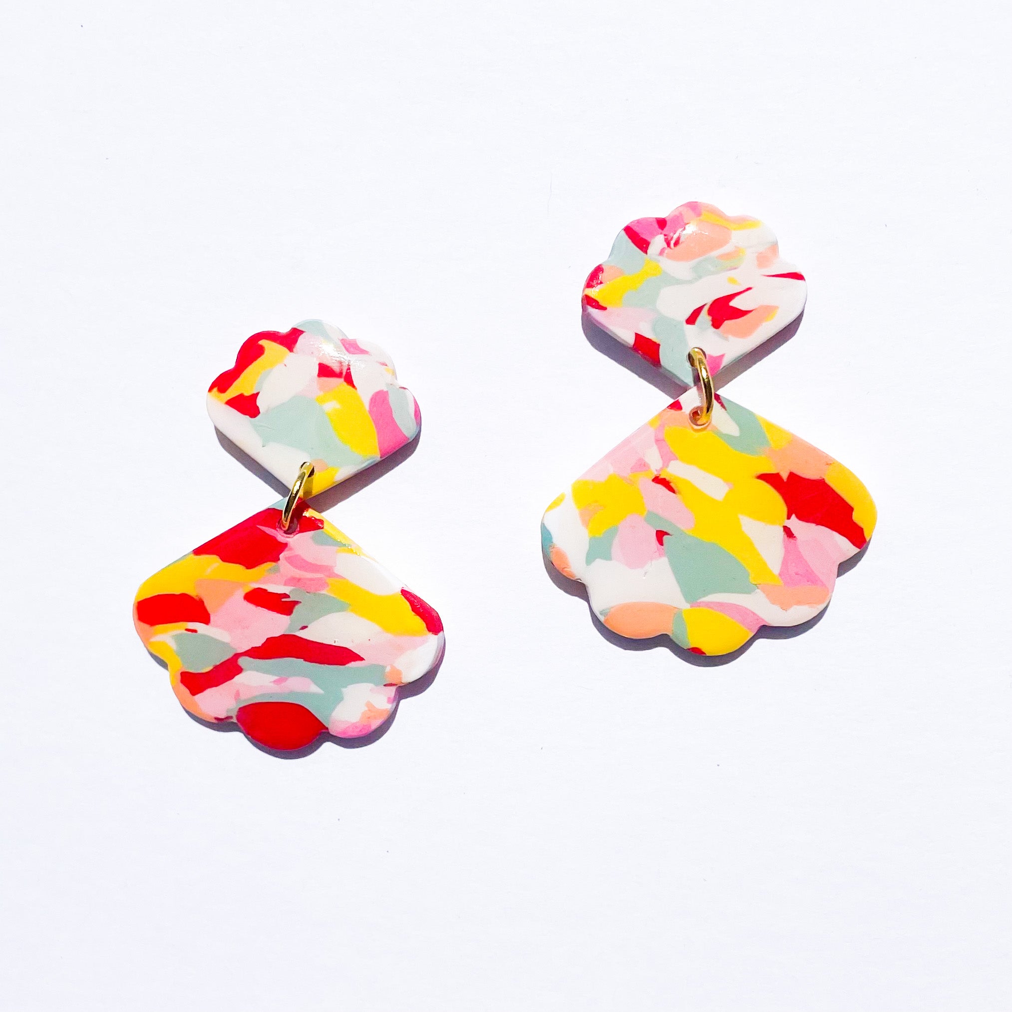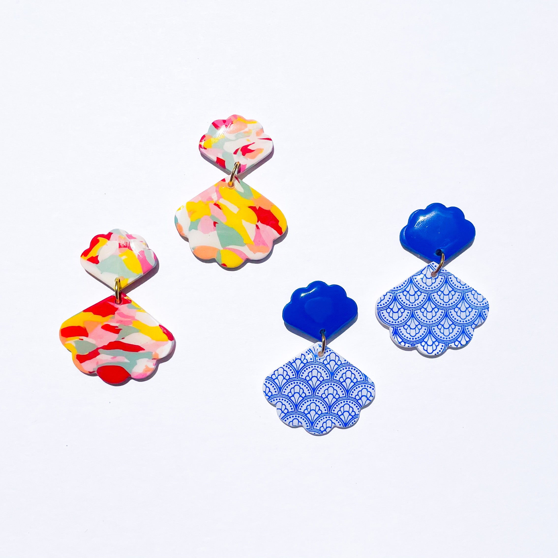 Modern Lulu polymer clay earrings are hand-cut and finished with hypoallergenic titanium ear posts with aluminum/PVC push backs. The clay components are water resistant and make for a super lightweight earring. Due to the handmade nature of these earrings, they are all unique and may vary slightly from the photos.