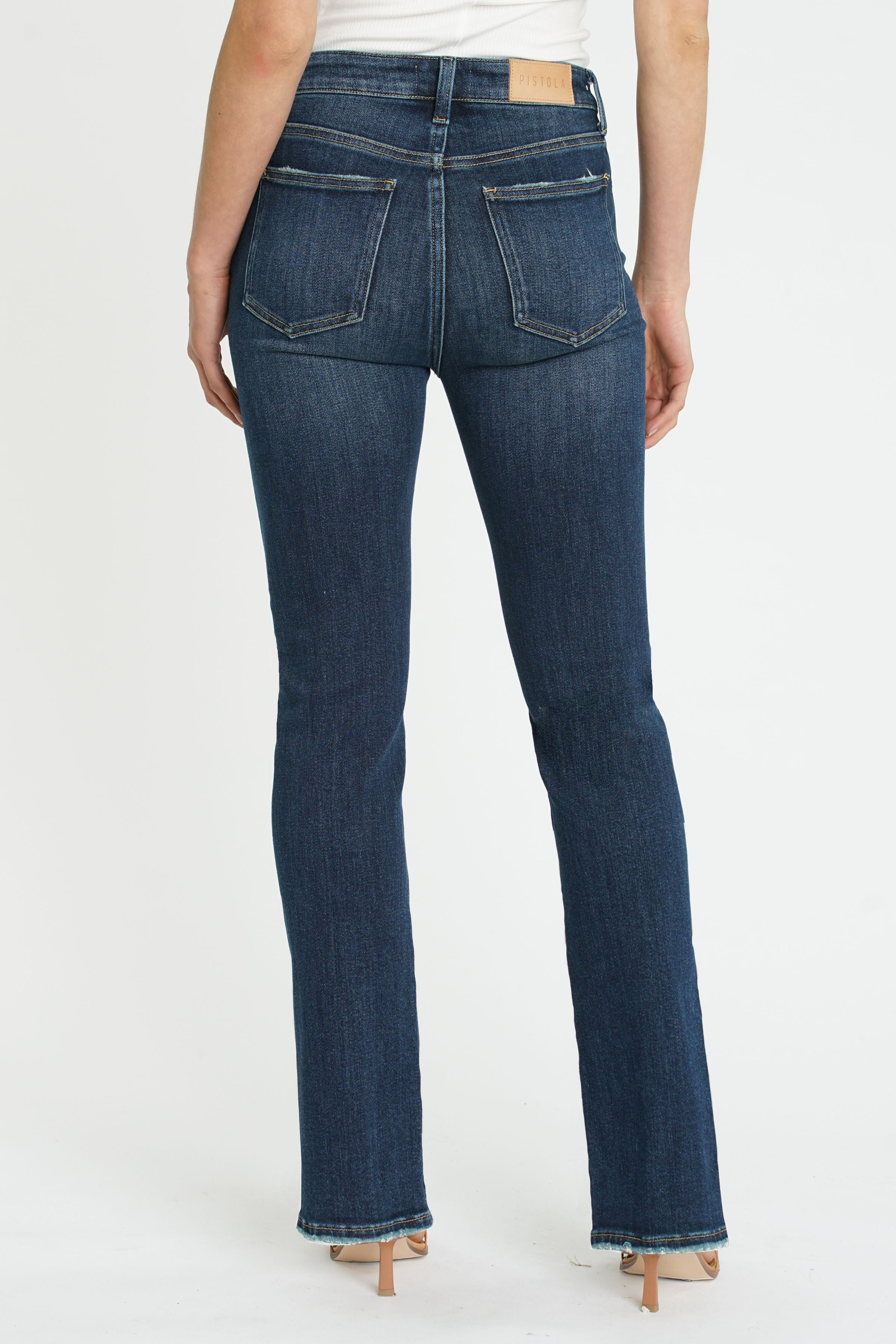 The Teagan is our new high rise straight pant, which has a slim fit from the hips to the knee and the tapers down.