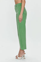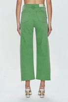 High rise waist, with a wide leg silhouette and a cropped, ankle length hemline. Crafted from our signature comfort stretch denim, with a double stitched waistline and scissor cut hems. Offered in a vibrant green colorway.