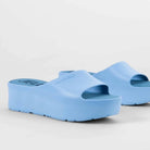 Matching the refreshed sweet scent in the air, these papaya coloured platform slides for women urge for warm days. Let yourself go with the tide and match them with beachwear for long summer days. With a relaxed vibe they will give you light, fun steps into new and diverse scenarios. Vegan and produced with 100% renewable energy.