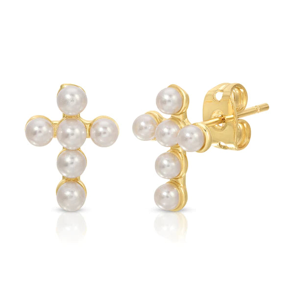 These Baby Vivi cross studs are a perfect summer time stud. Large enough to stand out but Delicate with its pearl detail, these earrings give you that extra pop to your wardrobe.