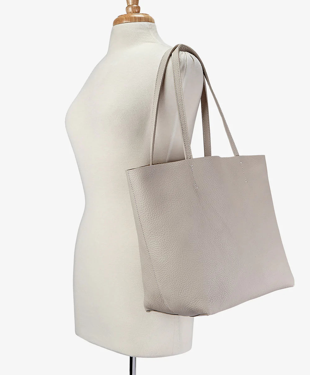 Crafted of soft, supple leather, this spacious shopper features a generous interior for work-to-weekend versatility. Contrasting stitch detail with matching detachable unlined zipper pouch.