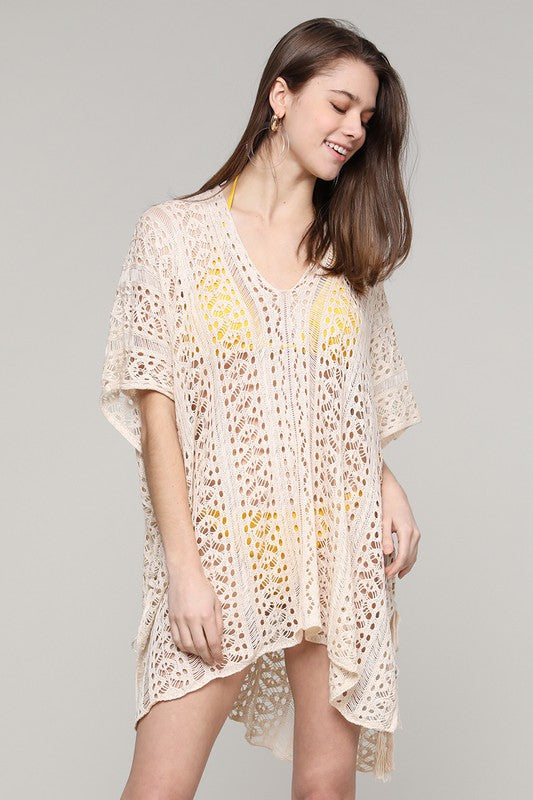 Beige Kimono Side Tie Coverup - ONE SIZE