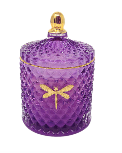 Intricately cut glass with gold details, this elegant vessel will get re-purposed in your home long after the candle has finished burning.