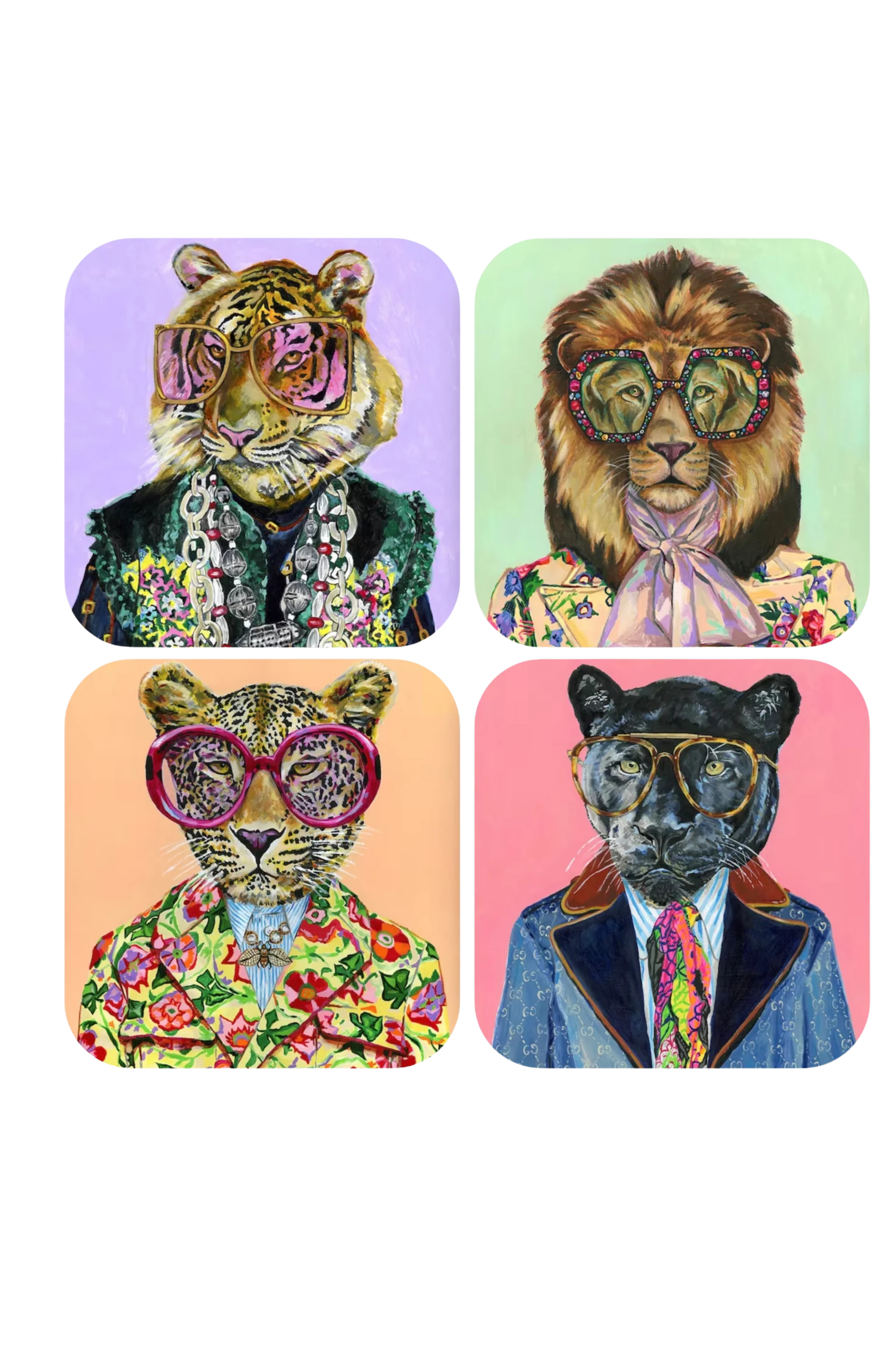 Introducing our latest Heather Perry collaboration, the Big Cats coasters! These acrylic charmers feature fashionable cats, dripping in designer garb – perfect for adding a wild touch to your home or workspace. Time to roar with style!