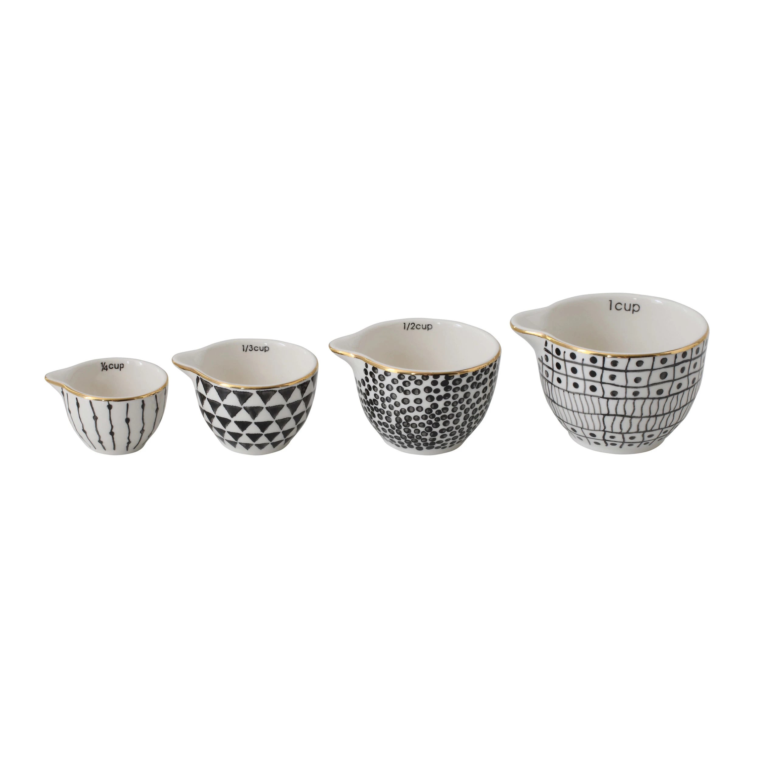 Black and White Gold Rim Stoneware Measuring Cups, S/4