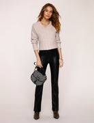 The Bendel Pant is a high-waisted and bootcut pant that's easy to pull on thanks to its elasticized waistband. Stretchy to hug your curves, it's made of our luxe vegan leather and has an authentic look and feel.