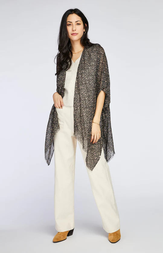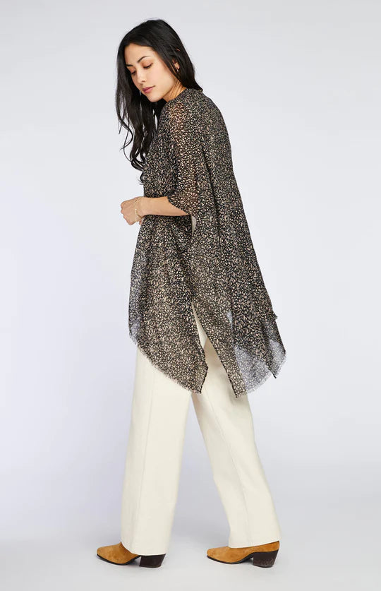 The Dawn cover-up is made of EcoVero viscose and features a dot texture print designed in house. Wear it as a lightweight layering piece all season long.