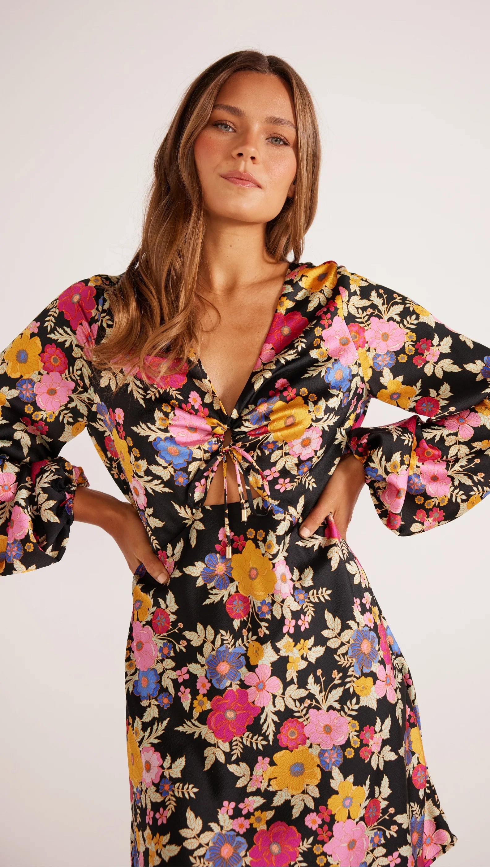 - Peek-a-boo cut-out at bust with adjustable drawcord