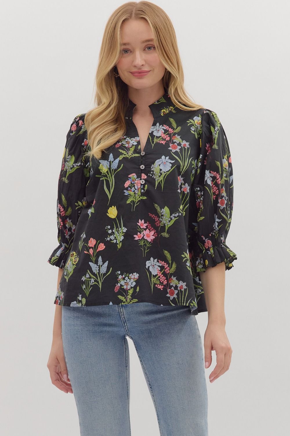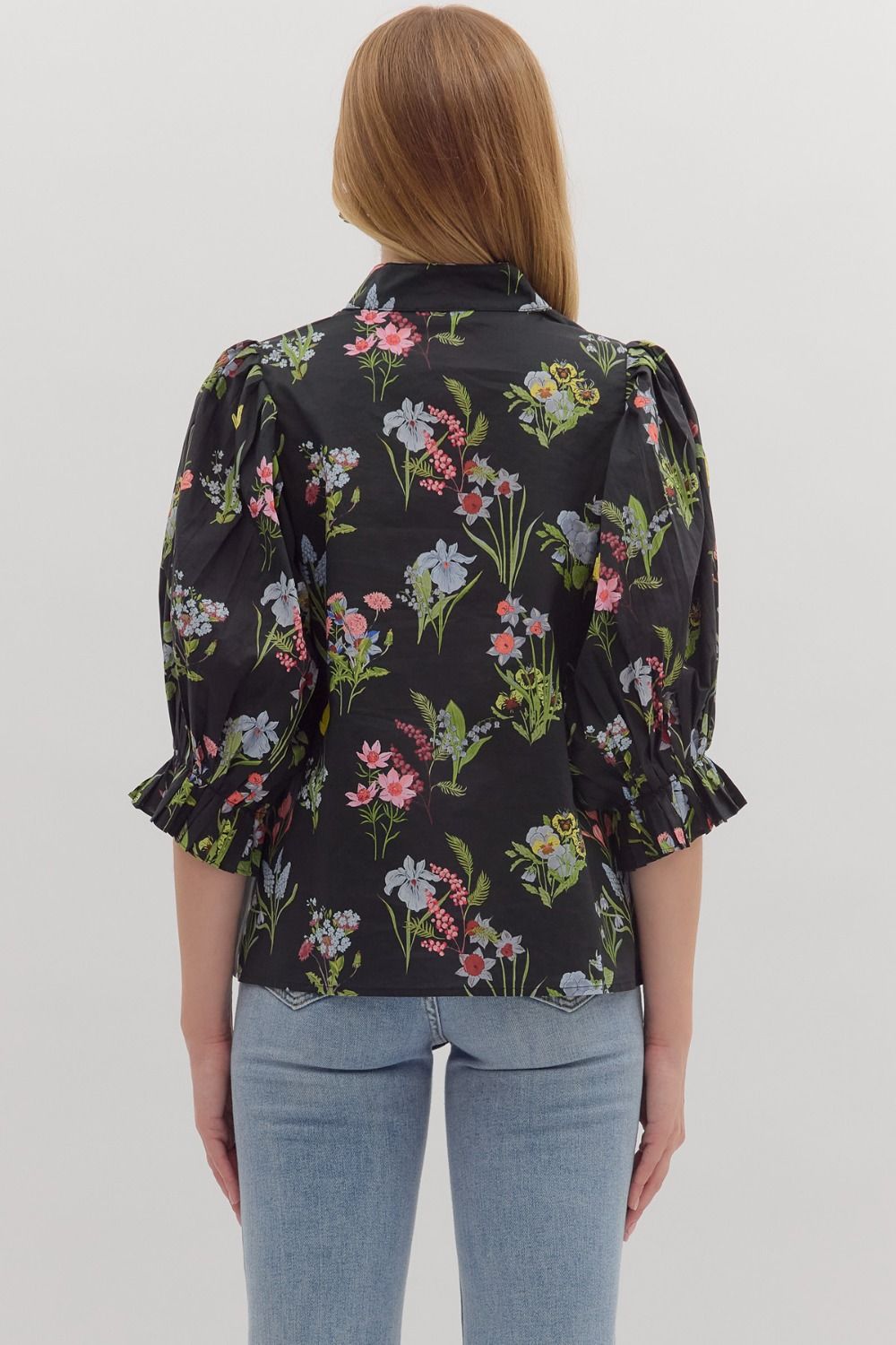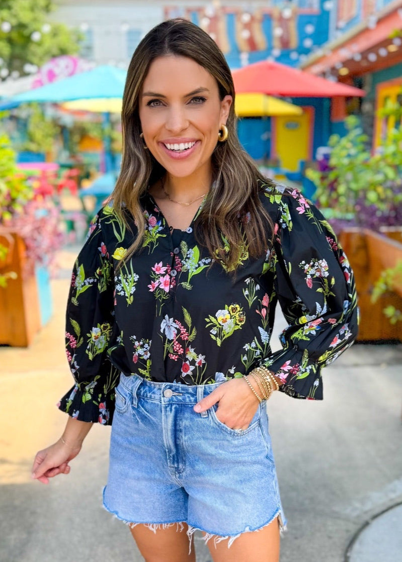 Black Floral Jeanie Top