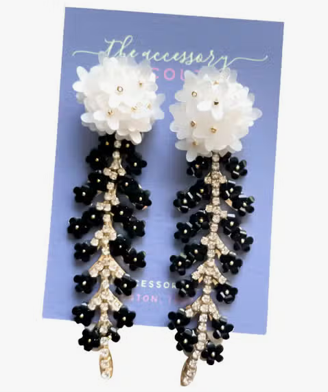 A white flower top attached to long lavender flowers on a golden base. These are BEAUTIFUL! SIZE & FIT * 3" H * Pierced