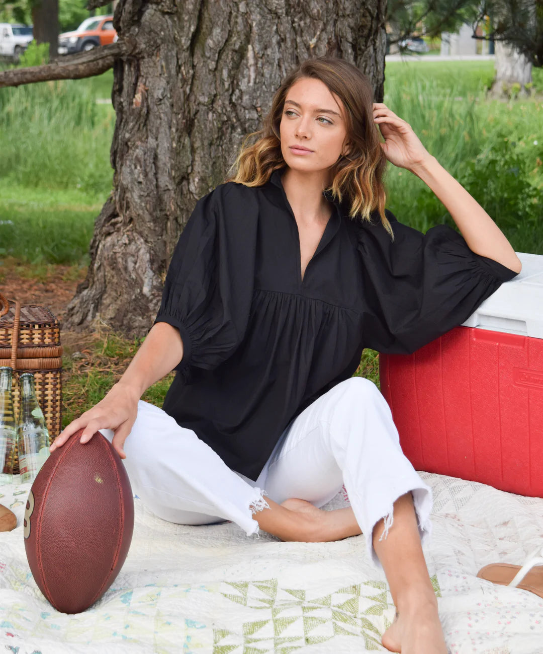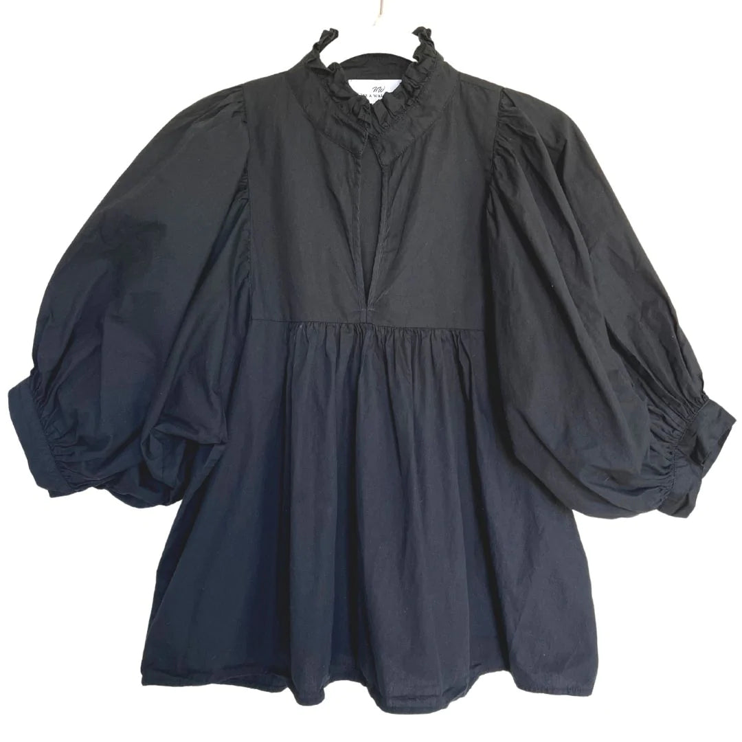 Black Poplin High Neck Top
