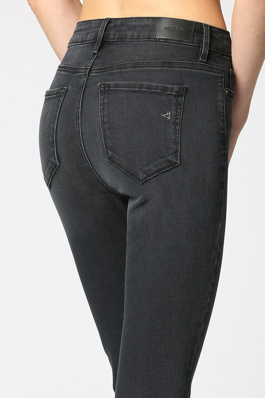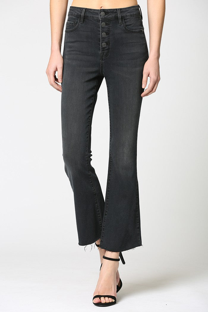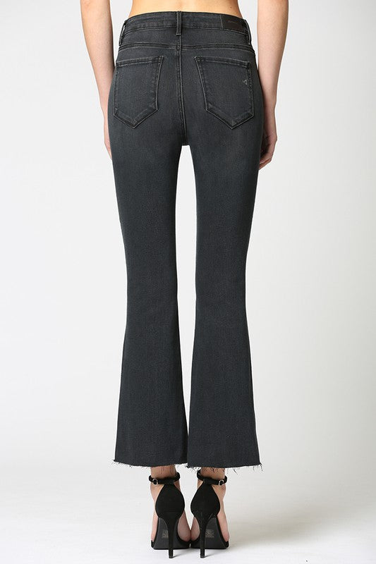 Black High Rise Clean Hem Cropped Flare Happi Jean