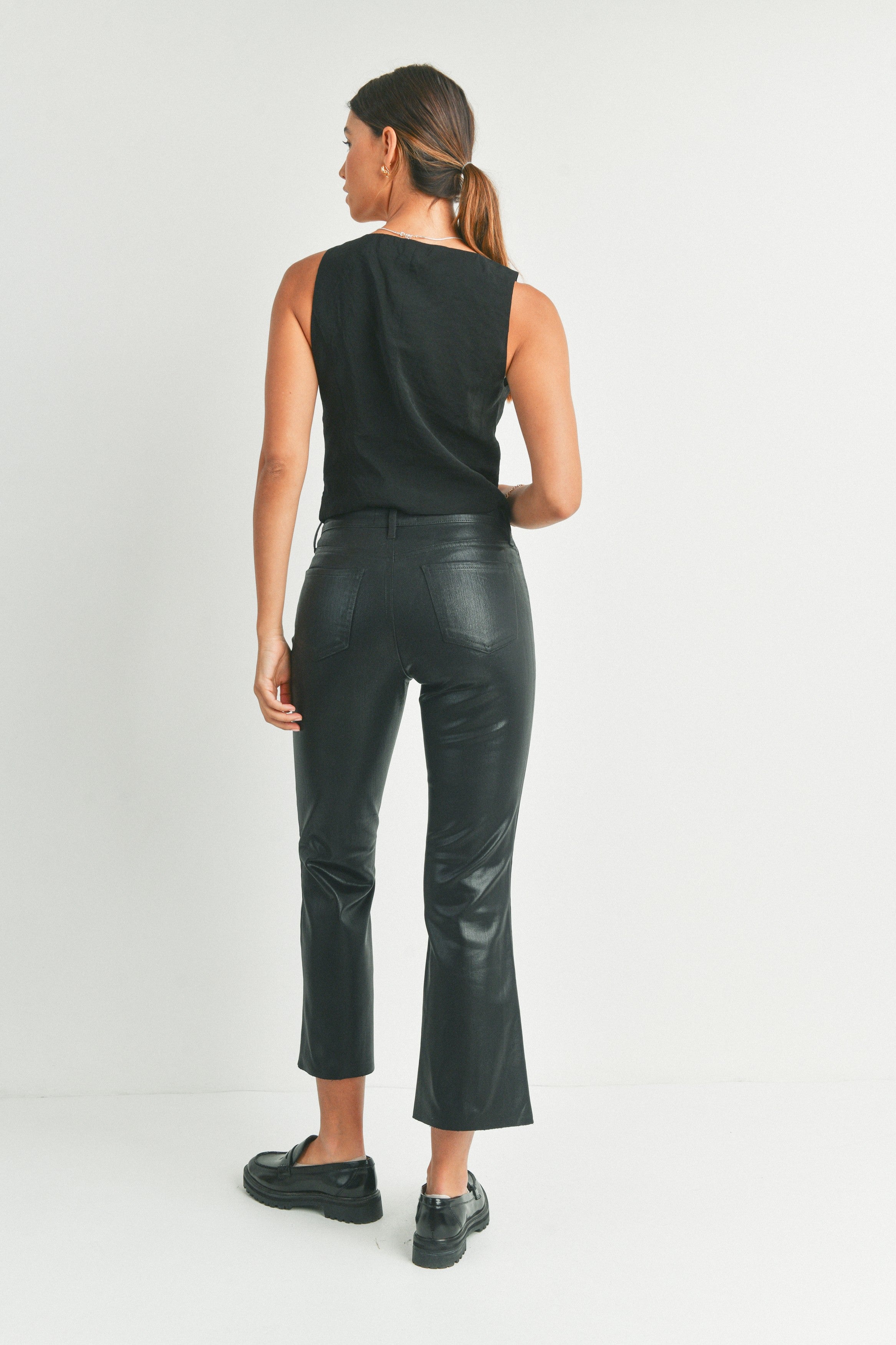 Kick back and take a walk on the beach in a raw-hem cropped skinny. This pair goes with all your summer footwear, including bare, sandy feet. In a coated black. 10.5" RISE, 26.5" INSEAM, 9'' OPENING