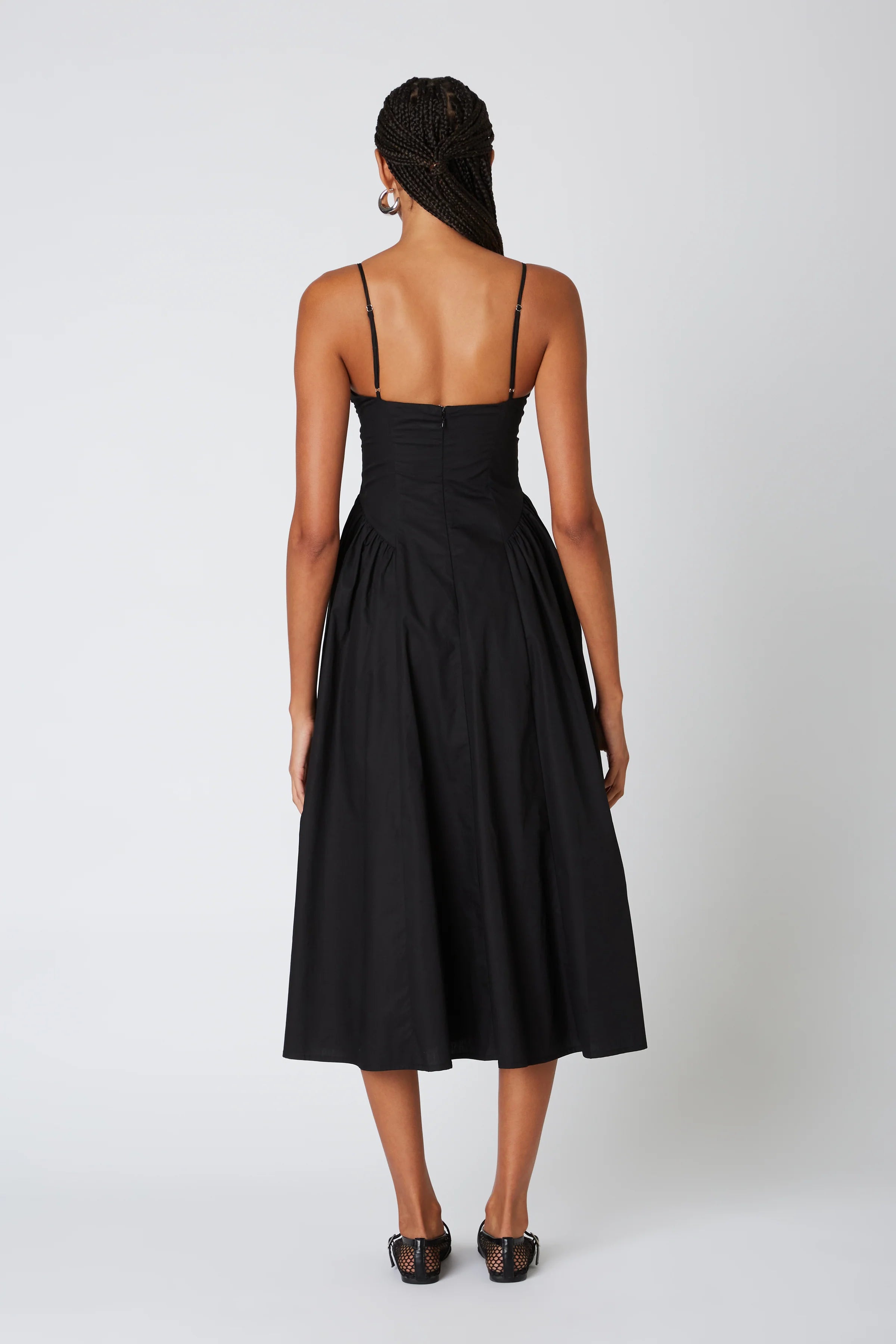 Poplin midi dress twisted bust detail and invisible zipper closure at back. Fully lined.