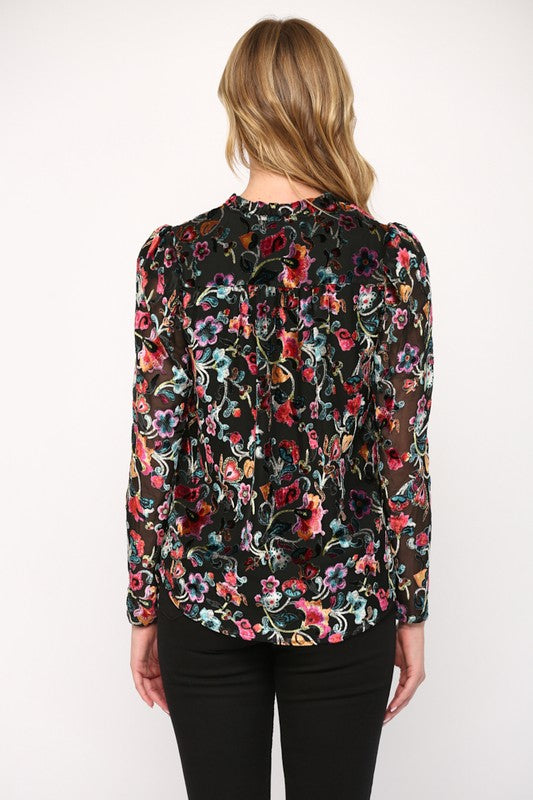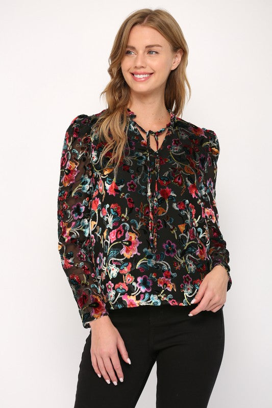 Black Multi Burnout Velvet Top