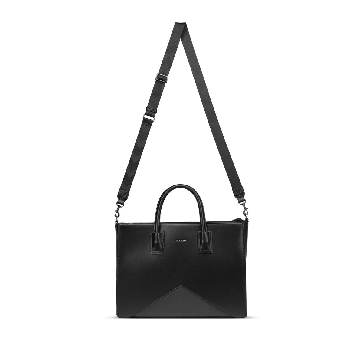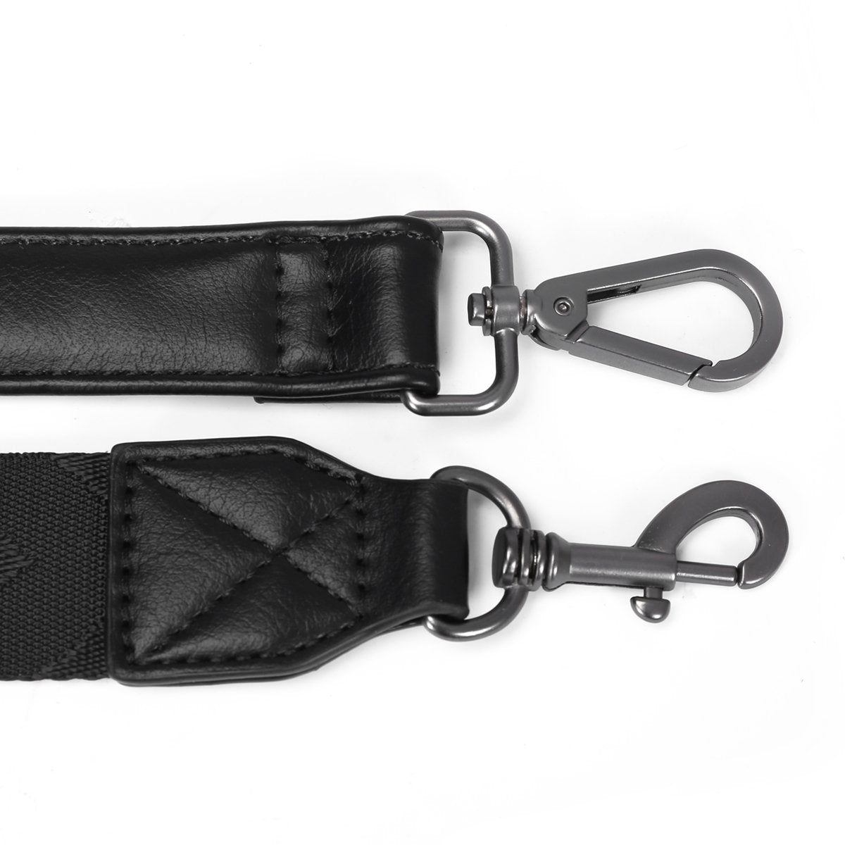 - 2 detachable, adjustable crossbody straps (1 vegan leather, 1 woven)