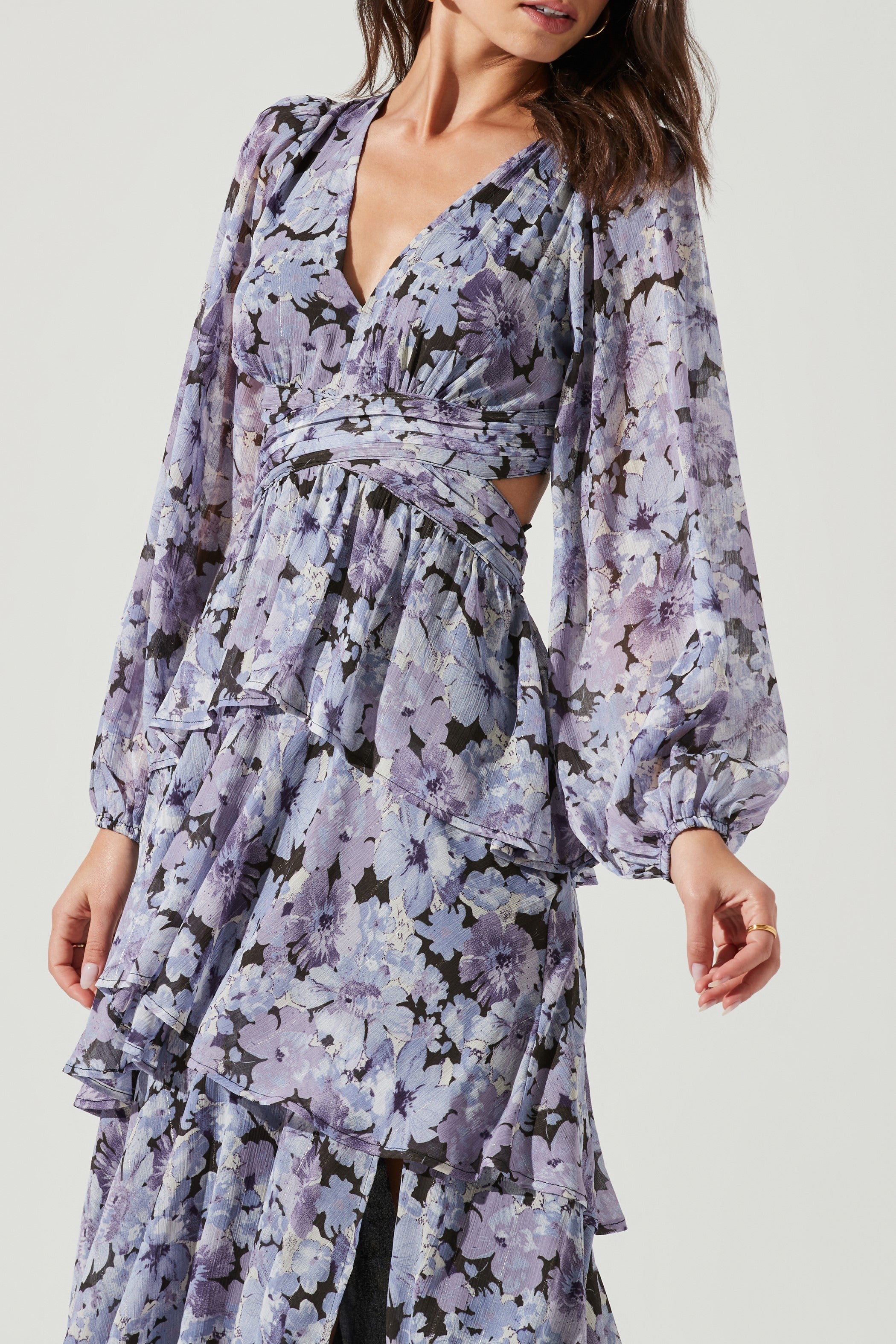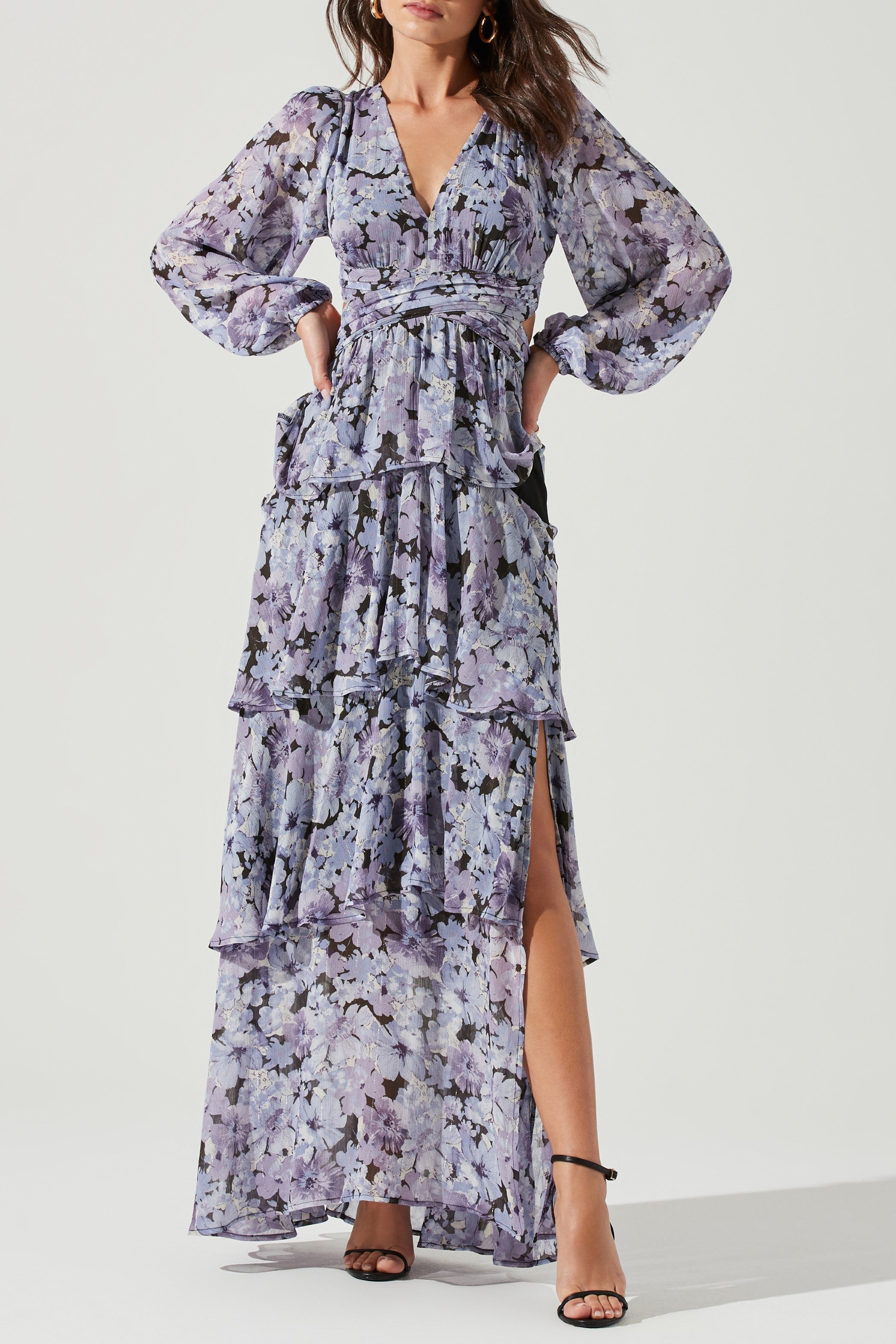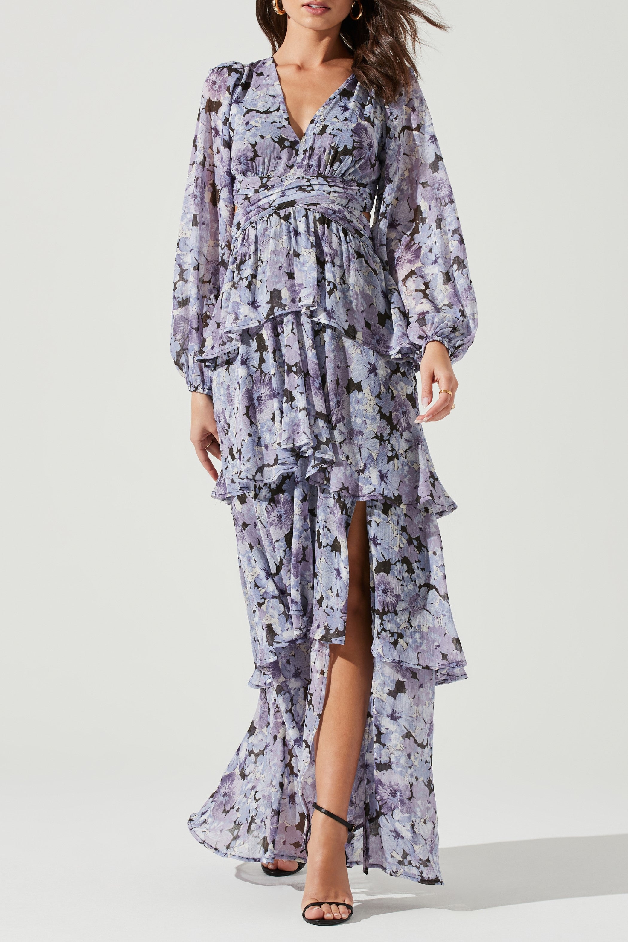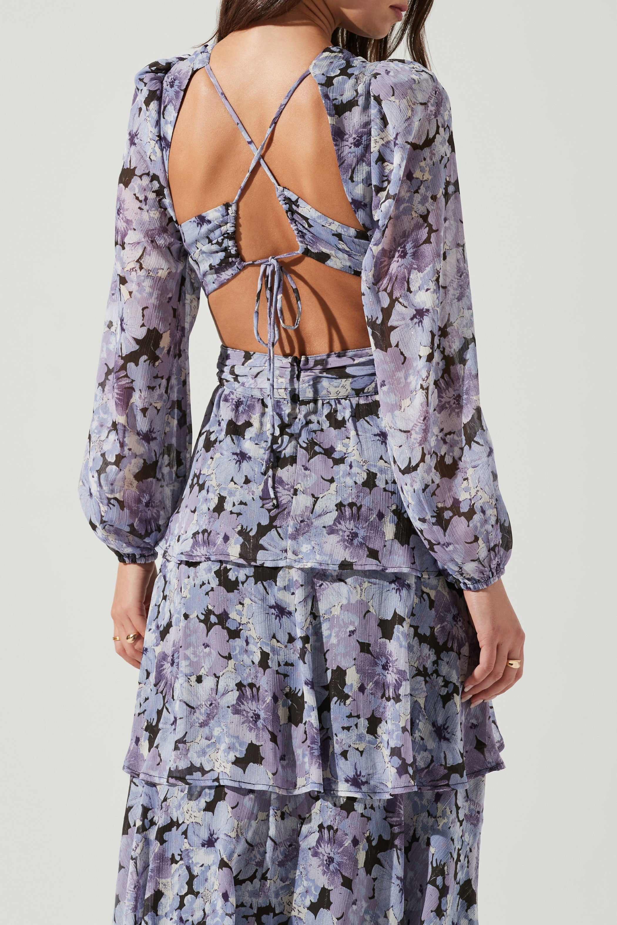 Black/Purple Floral Back Tie Anora Maxi Dress