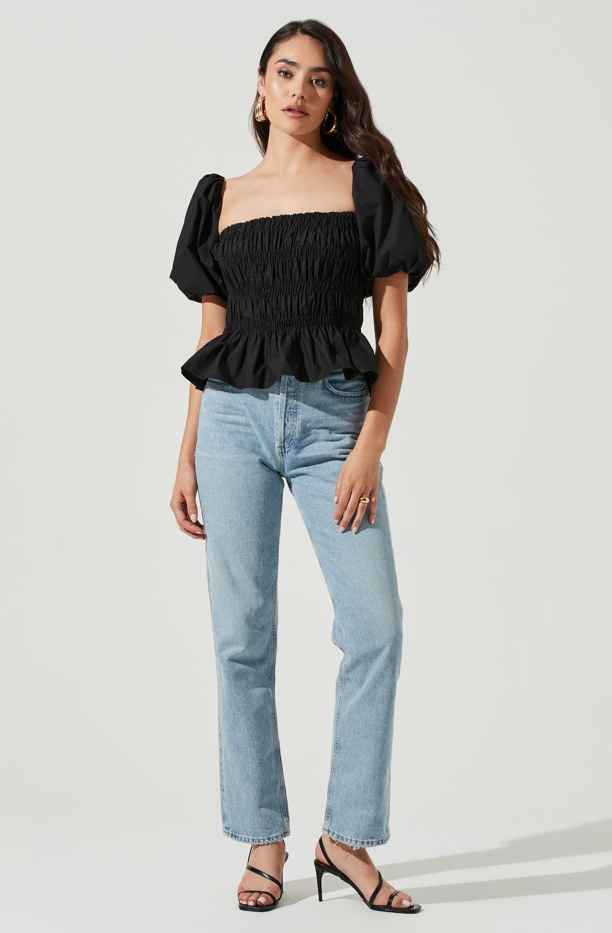 Black Smocked Bubble Slv Savina Top