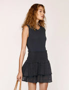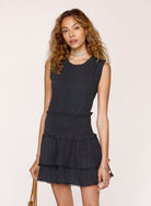 Airy and light, the Bandie Dress is designed with a relaxed bodice, smocked waistband, and tiered ruffle skirt. Style with tennis sneaker and denim jacket for day and transition to night with a strappy heel.