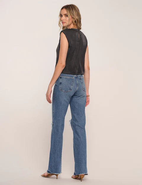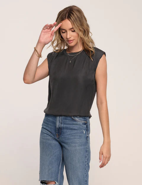Made of soft hammered satin, the Sully Tee has a ribbed collar and lightly padded shoulders for structure. It's perfect with jeans or cut-offs when the temps rise.