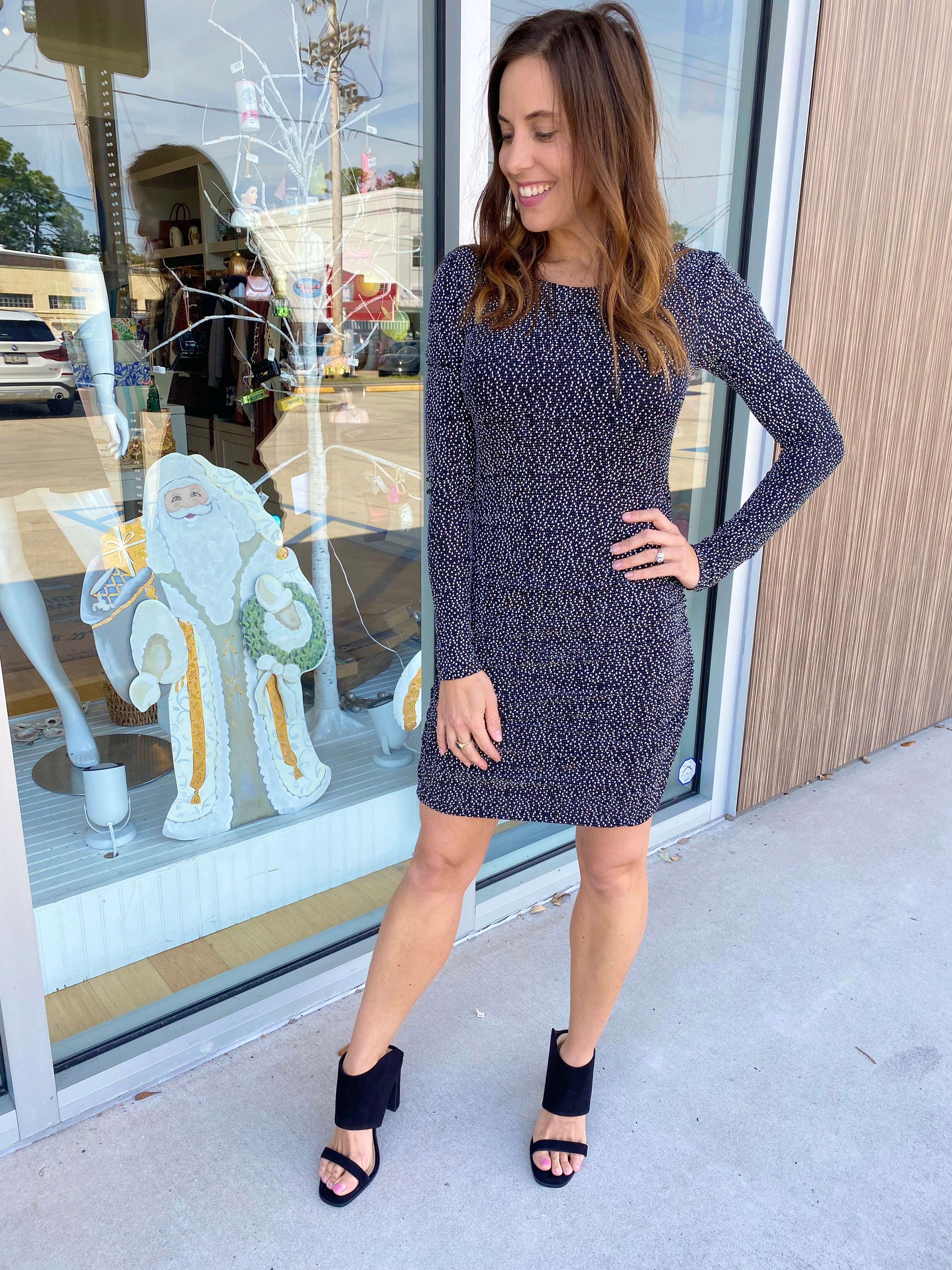 Black/White L/S Metallic Knit Mini Dress
