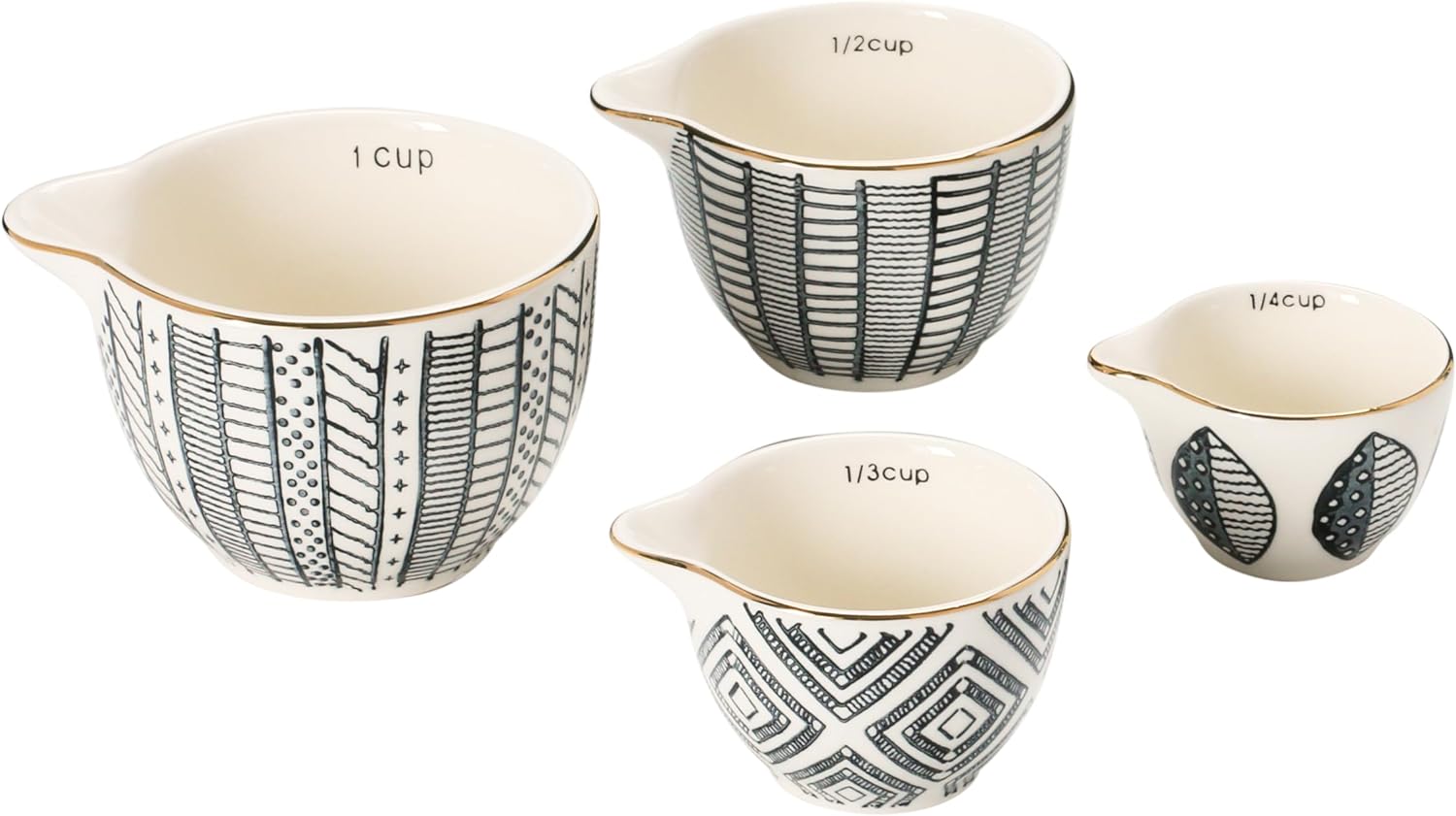 These measuring cups bring style and class into your kitchen no matter what you're making. Made out of stoneware and feature a wax relief pattern. Comes in a set of 4