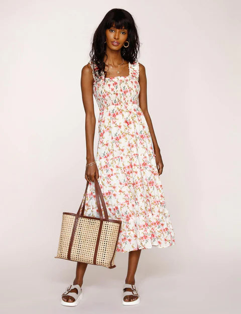 Perfect for any summer event or wedding, the Yara Dress is feminine and sophisticated. It has a smocked bodice and wide smocked straps with ruffle detailing. The tiered skirt is flowy and ultra romantic. Pair with flats for the day and strappy heels to dress it up.