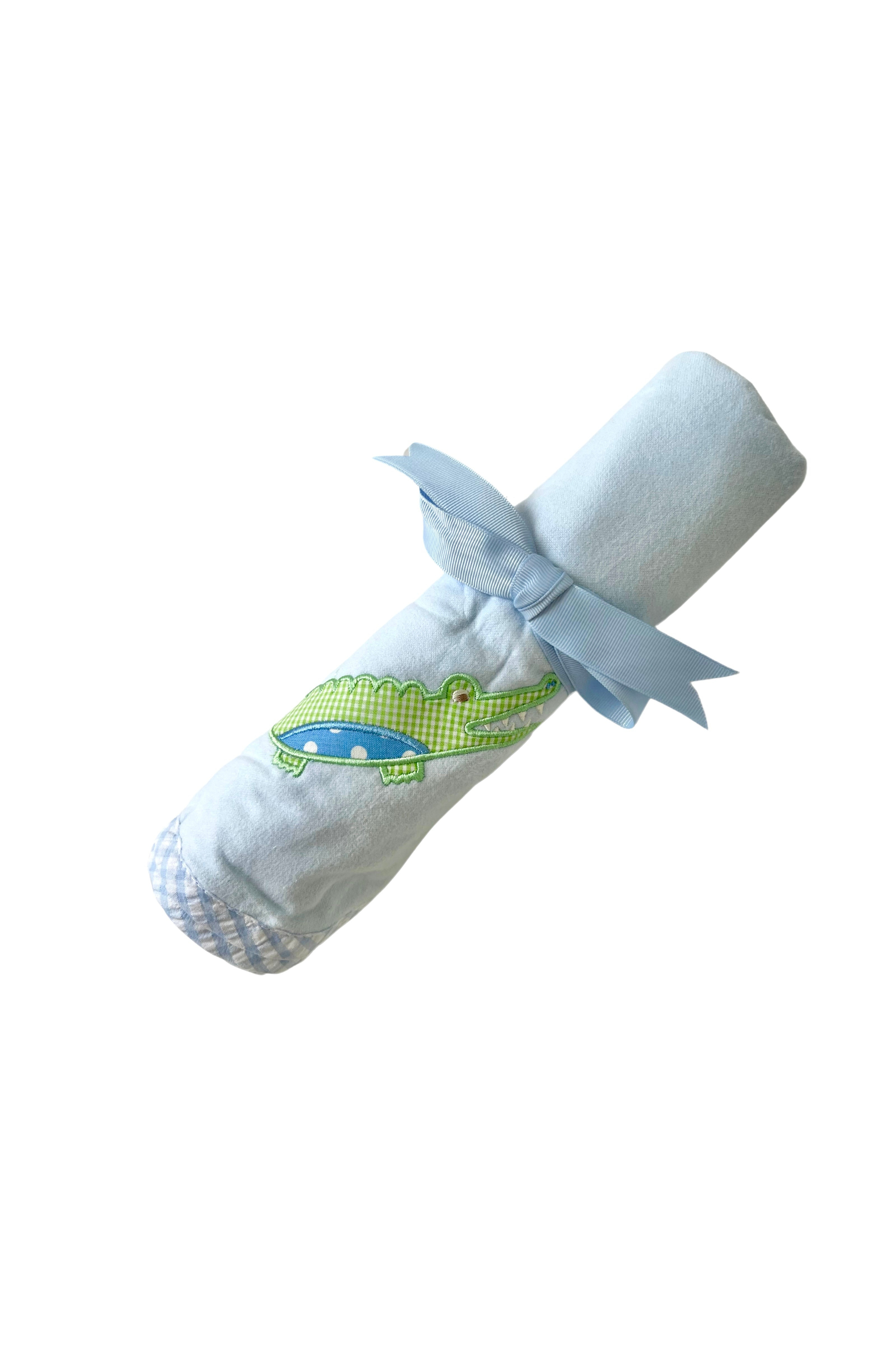 Our swaddle blankets are made from 100% cotton double-napped flannel (as used in many hospitals!). They feature one of our signature appliques. They are multi-functional – use them for cuddling, swaddling, tummy time, and even as stroller covers on a sunny day.