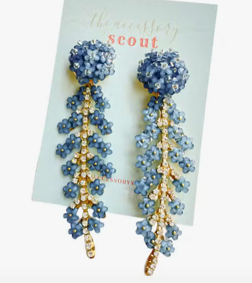 A flower top attached to long lavender flowers on a golden base. These are BEAUTIFUL! SIZE & FIT * 3" H * Pierced